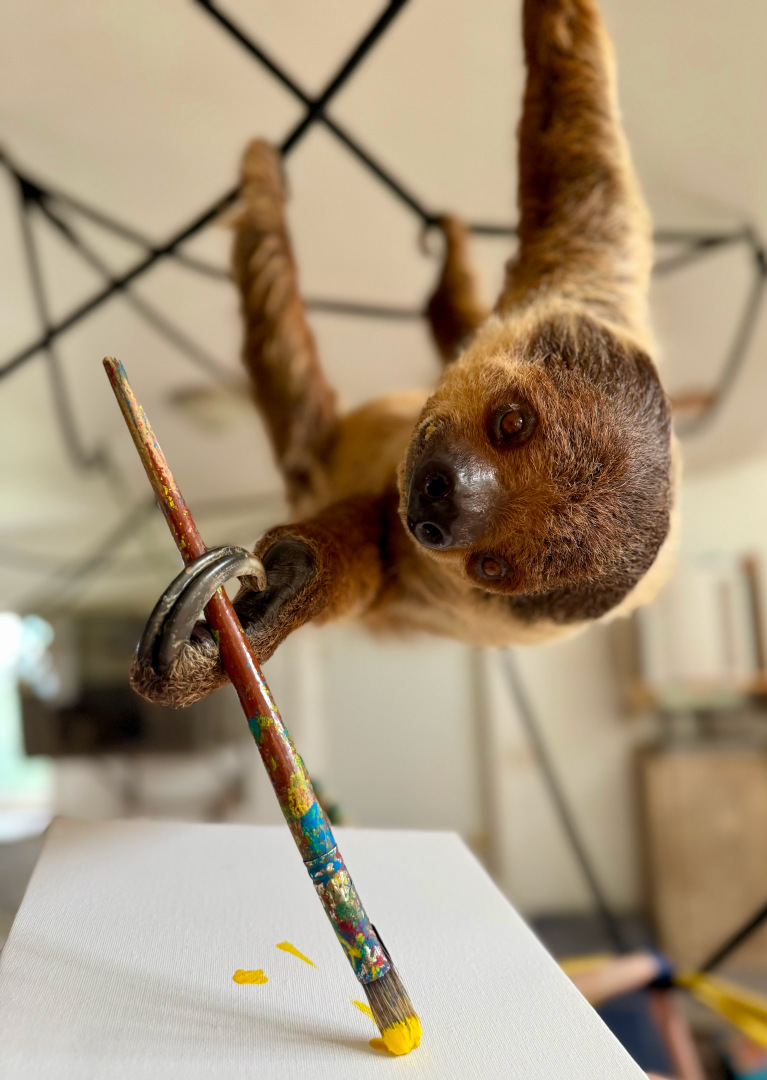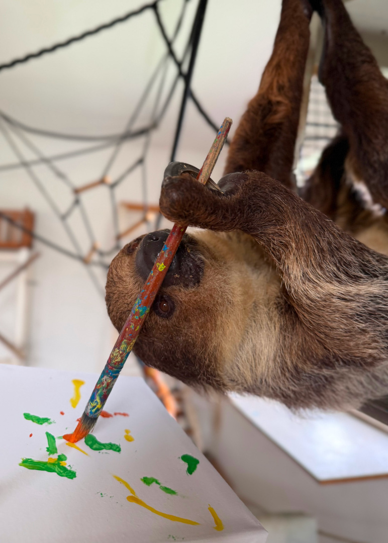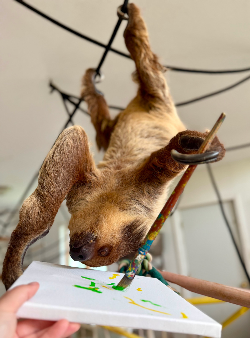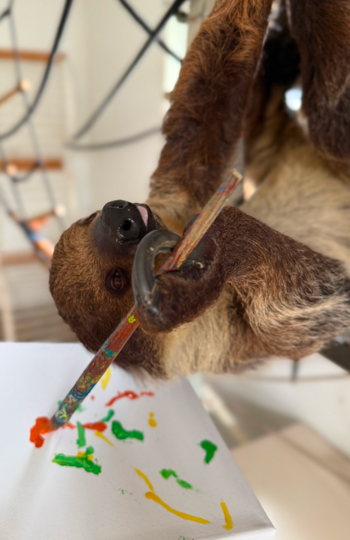 I decided to present the sloths with Autumn colors as we get ready to welcome the new season. Enzo and Zuri each painted their abstract art with the colors given.